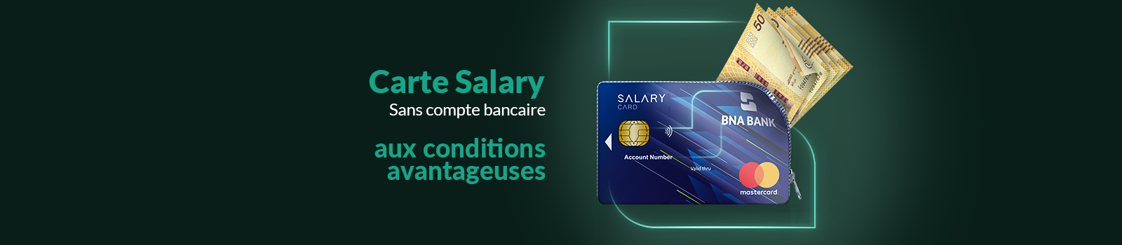 Vous êtes une entreprise employant un nombre important de salariés, la BNA met à votre disposition la Carte Salaire Prépayée "SALARY" vous permettant de régler en TEMPS REEL tous les émoluments de vos salariés, BANCARISÉS OU NON BANCARISÉS, via la solution e-Banking BNA Cash Management.